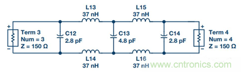 圖14. 單端濾波器轉(zhuǎn)化為差分濾波器