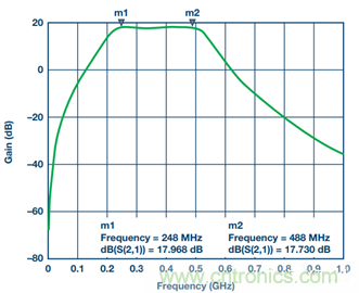 圖21. 采用Murata LQW18A電感的濾波器傳輸響應(yīng)
