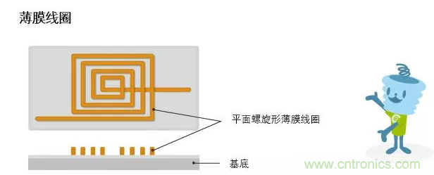 薄膜電感采用的是類似于IC制作的工藝,在基底上鍍一層導(dǎo)體膜,然后采用光刻工藝形成線圈,最后增加介質(zhì)層、絕緣層、電極層,封裝成型。