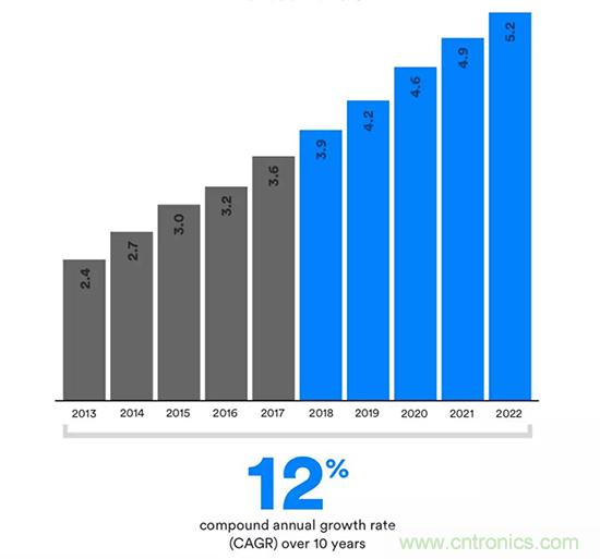 你知道去年全球藍(lán)牙設(shè)備出貨多少嗎? 藍(lán)牙技術(shù)聯(lián)盟公布的數(shù)字是36億!藍(lán)牙設(shè)備年復(fù)合增長率是12%!這是一個(gè)非常值得期待的大市場!現(xiàn)在藍(lán)牙技術(shù)已經(jīng)從手機(jī)擴(kuò)散到音箱、汽車、智能家居、工業(yè)、智能建筑等很多領(lǐng)域。