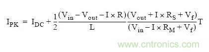 其中,Rs為感應(yīng)電阻阻抗加電感繞線電阻的阻。Vf 是肖特基二極管的正向壓降。R是Rs加MOSFET導(dǎo)通電阻,R=Rs+Rm。