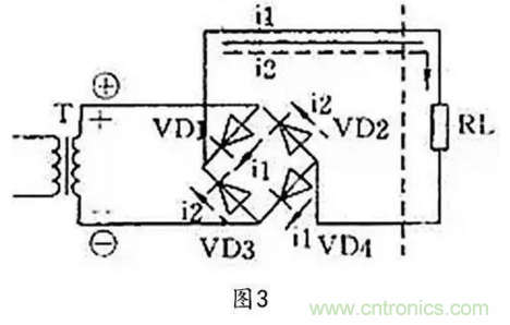 像我們ASEMI的整流橋一般情況下也都是全波橋式整流,全波橋式整流用的是4個(gè)二極管組成的橋式電路,這種電路只能有單個(gè)次級(jí)線圈的變壓器。見圖3,負(fù)載上的電流波形和輸出電壓值與第二種全波整流電路是完全相同的。