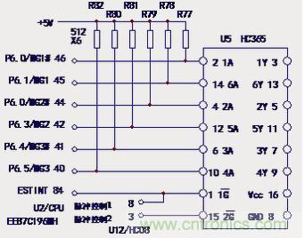 如圖4所示,U2的脈沖引腳的上拉電阻為5.1k,在3.3~10kΩ的范圍之內。