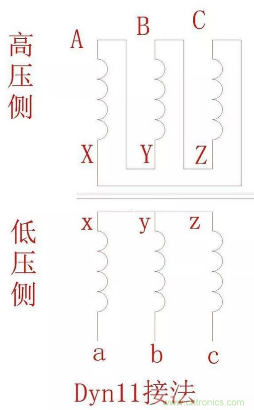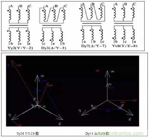 2.Yyn0的意義:Y:高壓側星型接法,無中性點引出;y:低壓側星型接法;n:中性點引出;0:高低壓差位差0度。