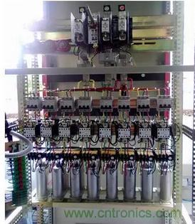 合上刀熔開(kāi)關(guān)和斷路器,無(wú)功功率補(bǔ)償控制器根據(jù)進(jìn)線柜電壓和電流的相位差輸出控制信號(hào),控制交流接觸器閉合和斷開(kāi),從而控制電容器投入和退出。