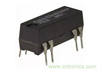 舉例來說,TE Connectivity的JWD-171-10磁簧繼電器有一個集成吸收器二極管的24V線圈,以及一個常開觸頭,其在20V時的額定最大切換電流為500mA。JWD系列磁簧繼電器設(shè)計安裝在電路板上,基底面與14引腳DIP集成電路相同,不過只有8個引腳(圖1)。
