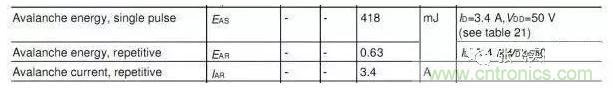 EAS:?jiǎn)未窝┍滥芰?,EAR:重復(fù)雪崩能量,IAR:重復(fù)雪崩電流