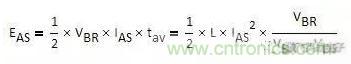 上圖是典型的單次雪崩VDS,ID波形,對(duì)應(yīng)的單次雪崩能量為: