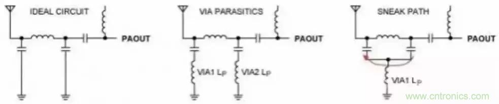 應遵循原則:確保對敏感區(qū)域的過孔電感建模;濾波器或匹配網(wǎng)絡采用獨立過孔;較薄的PCB覆銅會降低過孔寄生電感的影響。