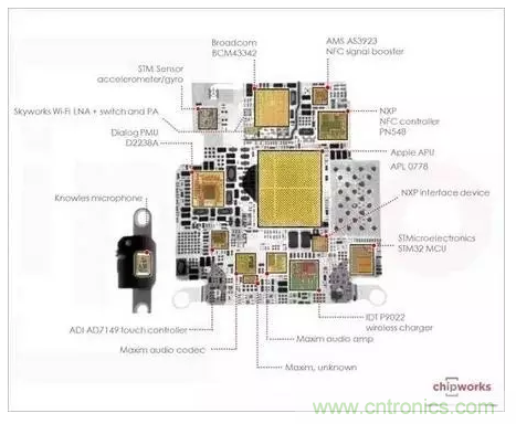采用 SiP 技術(shù)的產(chǎn)品,最著名的非 Apple Watch 莫屬。因?yàn)?Watch 的內(nèi)部空間太小,它無法采用傳統(tǒng)的技術(shù),SoC 的設(shè)計(jì)成本又太高,SiP 成了首要之選。藉由 SiP 技術(shù),不單可縮小體積,還可拉近各個(gè) IC 間的距離,成為可行的折衷方案。下圖便是 Apple Watch 芯片的結(jié)構(gòu)圖,可以看到相當(dāng)多的 IC 包含在其中。