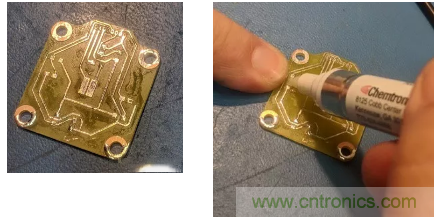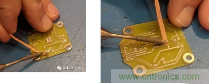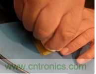 然后用一塊干凈的干布將電路板“擦亮”。在此過程中要稍微用點(diǎn)力,這樣焊料涂層會(huì)更有光澤。