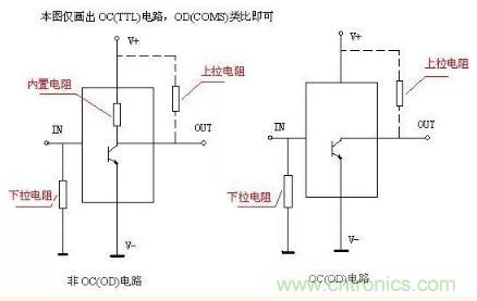 當(dāng)TTL電路驅(qū)動(dòng)CMOS電路時(shí),如果TTL電路輸出的高電平低于CMOS電路的最低高電平,這時(shí)就需要在TTL的輸出端接上拉電阻,以提高輸出高電平的值;OC門電路必須加上拉電阻,以提高輸出的高電平值。