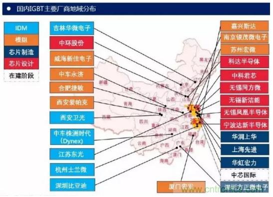 從公司來看,國外研發(fā)IGBT器件的公司主要有英飛凌、 ABB、三菱、西門康、東芝、富士等。中國功率半導(dǎo)體市場占世界市場的50%以上,但在中高端MOSFET及IGBT主流器件市場上,90%主要依賴進口,基本被國外歐美、日本企業(yè)壟斷。