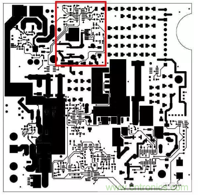 圖3 這是自動測試設備的PCB,因為事先了解過那顆SEPIC轉(zhuǎn)換器(以紅框標示),我的設計第一次就成功。
