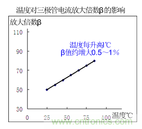溫度上升,β、IC將增大,UCE將下降,在電路設(shè)計時應(yīng)考慮采取相應(yīng)的措施,如遠(yuǎn)離熱源、散熱等,克服溫度對三極管性能的影響。