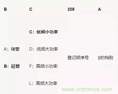 不同的國家/地區(qū)對三極管型號命名方式不同。還有很多廠家使用自己的命名方式。