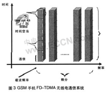 思考當(dāng)今電子世界,到處信號持續(xù)不斷地變化:音頻的輸入/輸出能產(chǎn)生輻射及傳導(dǎo)EMI,然后發(fā)射更高頻率的射頻線,導(dǎo)致信號失真;手機天線(TDMA脈沖)會發(fā)射射頻信號,此信號可被長線頭戴式耳機接收,導(dǎo)致音頻信號通路中EMI噪音;GSM(全球通)手機標(biāo)準(zhǔn)使用頻分多路傳輸和時分多路傳輸,同時傳送大量電話,如圖3所示。