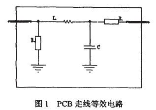 信號(hào)完整性主要有反射、振鈴、地彈和串?dāng)_等現(xiàn)象。PCB板上的走線可等效為圖1所示的串聯(lián)和并聯(lián)的電容、電阻和電感結(jié)構(gòu)。串聯(lián)電阻的典型值0.25D./R-4)。55DJft,并聯(lián)電阻阻值通常很高。將寄生電阻、電容和電感加到實(shí)際的PCB連線中之后,連線上的最終阻抗稱為特征阻抗zo。