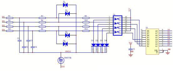 采樣電路的原理圖設(shè)計(jì)參見圖1: