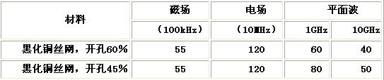 表8 金屬絲網(wǎng)屏蔽玻璃的屏蔽效能dB
