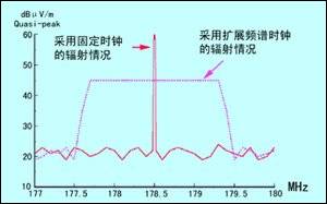 圖2 時鐘擴頻導致的輻射降低