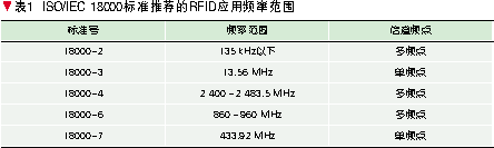 表1為國際標(biāo)準(zhǔn)ISO/IEC 18000標(biāo)準(zhǔn)系列中推薦RFID設(shè)備使用的頻率范圍。