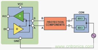 圖4:半雙工RS-485器件的耦合/去耦網(wǎng)絡(luò)