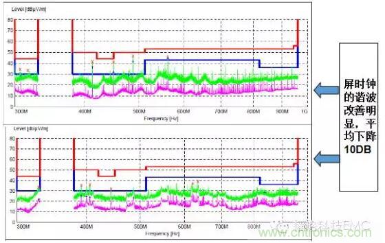 問題點(一): 屏時鐘的基頻以及諧波超標;