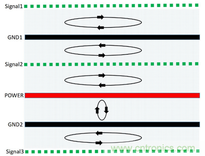 PCB疊層EMC規(guī)劃與設(shè)計(jì)思路的核心就是合理規(guī)劃信號(hào)回流路徑,盡可能減小信號(hào)從單板鏡像層的回流面積,使得磁通對(duì)消或最小化。