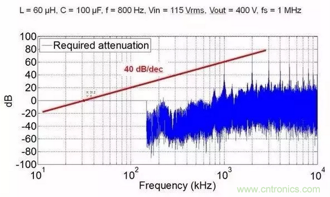 我知道很多人會說,怎么可能,di/dt和dv/dt都大了,怎么可能EMI濾波體積還小了。我想說一句,共模和差模濾波器的沒有區(qū)別,相同的截止頻率下,高頻的衰減更大!就算你高頻下共模噪聲越大,但是你的記住,這個頻率下LC濾波器的衰減更大,想想幅頻曲線吧。為了說明這個結(jié)論,我給出一些定量分析結(jié)果。這些EMI分析均基于AC/DC三相整流,拓撲為維也納整流。我分別給出了1Mhz和500Khz的共模噪聲,可以看出,500khz共模濾波器需要的截止頻率為19.2kHz,1MHz為31.2kHz。