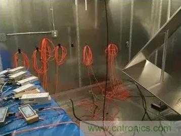 圖2:在EMC干擾室外用于抗干擾數(shù)據(jù)動態(tài)分析的示波器陣列