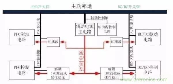 1.PFC的驅(qū)動(dòng)和IC共地接PFC管,更具體點(diǎn)是接采樣電阻的地;