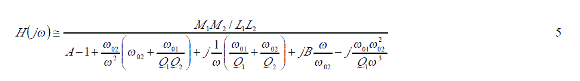 這里V1是發(fā)射信號(hào)的電壓, V2是接受信號(hào)的電壓,則測試回路的傳輸函數(shù)是由下式所決定的。
