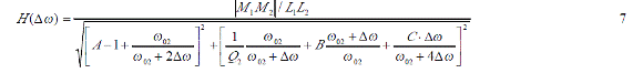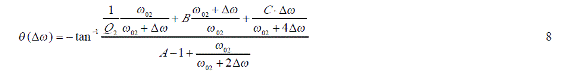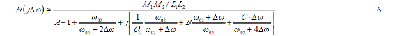 如果實(shí)際工作角頻率與待測諧振角頻率間的角頻率差 Δω控制在遠(yuǎn)小于 ω02,這樣可以無視 Δω的高次項(xiàng),式5可以作進(jìn)一步簡化。