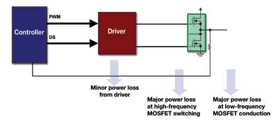 降壓或同步降壓電路是所有低電壓DC/DC功率管理系統(tǒng)的重負(fù)荷部件,而所有同步降壓電路中的主要功率損耗來自MOSFET的開關(guān)和傳導(dǎo)損耗。