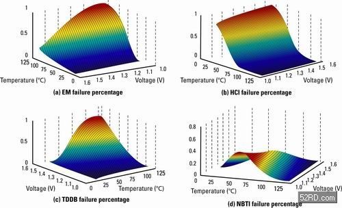 可用信息能夠估算出故障概率,卻無法提供實(shí)際故障數(shù)據(jù),這是實(shí)施可靠性工程的一大挑戰(zhàn)。一般來說,用上幾千小時(shí)去測(cè)試一個(gè)裝置的做法是不切實(shí)際的,所以我們通常無法得到一個(gè)元件或系統(tǒng)在實(shí)際壽命中的測(cè)試數(shù)據(jù)。新產(chǎn)品的可靠性數(shù)據(jù)往往等于零,然而這并不代表有關(guān)產(chǎn)品永遠(yuǎn)不會(huì)出現(xiàn)故障。雖然以更高溫度加快壽命測(cè)試或許能提供恰如其分的實(shí)驗(yàn)數(shù)據(jù),不過該實(shí)驗(yàn)前提包括了活化能量恒久不變的假設(shè),而在實(shí)際情況下,它是電壓和溫度的一個(gè)函數(shù)(圖1)。這限制了加快的壽命測(cè)試在預(yù)測(cè)可靠性方面的準(zhǔn)確度。因此,現(xiàn)場(chǎng)故障的監(jiān)察及反饋對(duì)提高產(chǎn)品可靠性的預(yù)測(cè)能力十分重要。