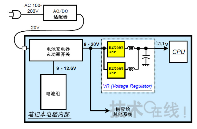 - 筆記本電腦的MPU和內(nèi)存等的電壓穩(wěn)壓器