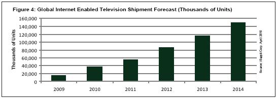 同樣,隨著品牌廠商努力延緩價格下跌速度和吸引消費(fèi)者來更換其原有的老式平板電視,未來幾年對于IETV的推廣活動將會增強(qiáng)。iSuppli公司預(yù)測,2014年IETV市場將從2009年的1470萬臺增長到1.49億臺,復(fù)合年度增長率為58.9%。