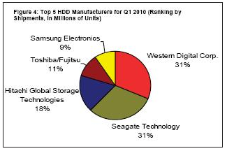 據(jù)iSuppli公司,西部數(shù)據(jù)在2010年第一季度硬盤出貨量最多,季度出貨量首次超過希捷,結(jié)束了長期屈居第二的局面。