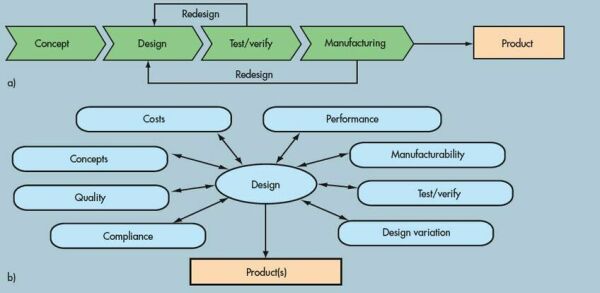 圖:(a)傳統(tǒng)PCB串行開(kāi)發(fā)流程的設(shè)計(jì)周期長(zhǎng),信息共享有限,而成本持續(xù)上升;(b)并行開(kāi)發(fā)流程允許多個(gè)開(kāi)發(fā)程同步進(jìn)行,有助于確保設(shè)計(jì)成功,避免延誤、額外開(kāi)銷(xiāo)以及返工。