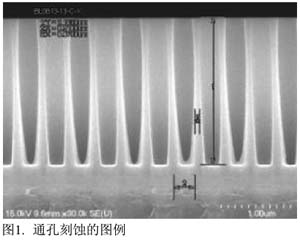 隨著半導(dǎo)體制造技術(shù)推進(jìn)到更加先進(jìn)的深亞微米技術(shù),半導(dǎo)體金屬布線的層數(shù)越來越多,相應(yīng)的通孔刻蝕工藝也越多,并且伴隨著通孔的尺寸隨著器件設(shè)計(jì)尺寸逐步縮小。以DRAM制造為例,存儲(chǔ)量由4M發(fā)展到512M時(shí),設(shè)計(jì)規(guī)則由1μm縮小到0.16μm,其中通孔的尺寸也從0.8μm下降到了0.25μm。通孔尺寸越小,刻蝕的難度也越來越大,如果刻蝕不到位,就可能出現(xiàn)金屬布線間的開路,直接導(dǎo)致器件失效。