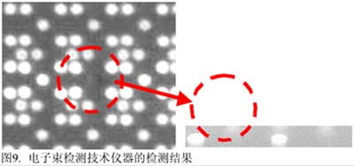 實(shí)驗(yàn)表明通孔刻蝕不足缺陷完全可以被E-scan300檢測到。其不足在于,電子束檢測技術(shù)以聚焦電子束作為檢測源,雖然靈敏度極高,但是檢測速度慢、價(jià)格高,而且高靈敏度的同時(shí)也帶來了很多干擾信號(hào),在實(shí)際生產(chǎn)中,在許多干擾信號(hào)中找出正確的通孔刻蝕不足缺陷將受到很大程度的限制(如圖9所示)。