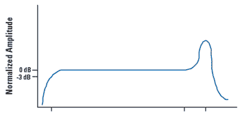 壓電傳感器可以感測滾軸所產(chǎn)生的振動(dòng)頻率及超聲波噪聲。壓電傳感電路由MOSFET為其提供內(nèi)部緩沖,而驅(qū)動(dòng)MOSFET的電流則來自A4的恒流源,通過交流耦合在內(nèi)部連接到濾波器。A1、A2及A3放大器組成一6極點(diǎn)低通濾波器并提供41.9dB的增益。取樣率為200kHz的ADC121S021模擬/數(shù)字轉(zhuǎn)換器負(fù)責(zé)將已放大及濾波的信號轉(zhuǎn)為數(shù)字信號。微處理器的軟件可以通過快速傅里葉變換(FFT)取得有關(guān)信號頻率及振幅的數(shù)據(jù)。圖中所示電路的通帶約為40kHz。圖2則顯示典型寬頻帶振動(dòng)傳感器的傳遞函數(shù)。