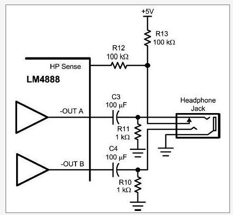 基于每個耳機檢測電路端口設(shè)計會採用不同要求,因此,該聲頻子系統(tǒng)提供兩個獨立的耳機(HP)控制輸入接腳。耳機的允許輸入可啟動SE輸出耳機模式和關(guān)閉BTL輸出模式。耳機感應檢測輸入需要用一個常規(guī)立體聲耳機插孔配合一起使用。剩余的HP邏輯輸入,能允許使用一個標準邏輯電平(Logic Level)來控制。