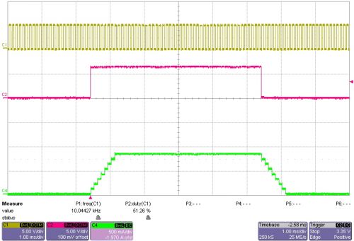 圖 2 10 kHz 時鐘頻率時的 LED 開啟和關(guān)閉情況