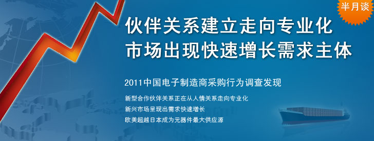 缺貨危機過后,中國電子系統(tǒng)制造商和電子元器件供應商對風險共擔、利益共享的伙伴關(guān)系有了新的理解。 2011中國電子制造商采購行為調(diào)查發(fā)現(xiàn),在供應商認證與引入過程中建立了系統(tǒng)流程并很好實施的比例顯著增加;讓供應商參與早期產(chǎn)品設(shè)計的比例顯著增加;培養(yǎng)供應商的比例顯著增加。合作伙伴關(guān)系建立正在從人情關(guān)系走向更加專業(yè)化和系統(tǒng)化。此外,新興市場在新型伙伴關(guān)系基礎(chǔ)上呈現(xiàn)出需求快速增長。