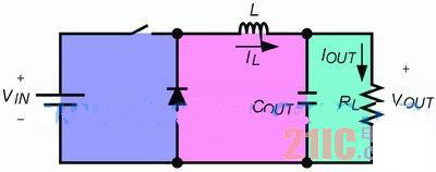 電流限制是開關(guān)式電源轉(zhuǎn)換器的一個(gè)重要保護(hù)功能,它可以在電流限制模式下限制可用的輸出電流,以防止出現(xiàn)系統(tǒng)故障。峰值電流限制是目前業(yè)內(nèi)普遍采用的電流限制方法。每當(dāng)電感的電流IL超出閾值IV時(shí),電源轉(zhuǎn)換器的開關(guān)(如圖1所示)便會(huì)關(guān)斷,以制止電流從輸入電壓源VIN注入,直至IL小于IV時(shí),開關(guān)才會(huì)重新開通。由于輸出電流IOUT總是等于IL的平均值(在工作期間IL呈線型紋波),故在電流限制模式下的IOUT(CL,DES) 為: