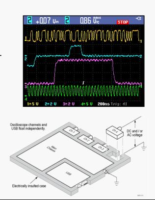 THS3000系列產(chǎn)品型號分為帶寬100 MHz、最大采樣率2.5 GS/s和200 MHZ、5 GS/s兩種,性能達(dá)到同類最佳。具備四個隔離通道,每通道10,000個樣點(diǎn)的記錄長度使用戶能夠以高采樣率捕獲大量信號信息,從而清楚地看到信號細(xì)節(jié),快速發(fā)現(xiàn)信號異常。THS3000示波器上的各個通道與機(jī)身接地以及各通道相互之間是隔離的。另外,用于數(shù)據(jù)存儲、儀器設(shè)置和PC通信的外部USB輸入也是隔離的。這讓用戶能夠安全地使用隨附的10X探頭進(jìn)行電壓高達(dá)300 VRMSCAT III的浮動測量,或使用可選探頭進(jìn)行電壓高達(dá)1000 VRMSCAT II的浮動測量。該儀器具有600 VRMSCAT III 防護(hù)等級的輸入(BNC連接器至大地),以保證安全的高壓測量。