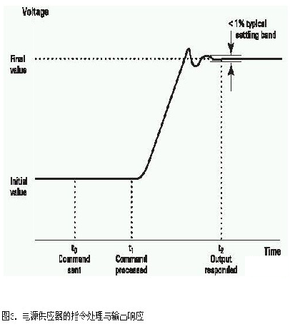 將電源供應(yīng)器的輸出電壓設(shè)定變更為新值時(shí),必須經(jīng)歷幾個步驟,如圖3 所示。這些步驟所花的時(shí)間很有限。當(dāng)電源供應(yīng)器接收到指令時(shí),必須加以處理,因此會有一段指令處理時(shí)間。接著,電源供應(yīng)器的輸出會予以回應(yīng)并變更成新的設(shè)定。它在某個穩(wěn)定區(qū)段內(nèi)達(dá)到終值所花的時(shí)間,即為輸出響應(yīng)時(shí)間。1%的穩(wěn)定區(qū)段對ECU 測試來說是合適的。特別需要注意的是下調(diào)設(shè)定時(shí)的輸出響應(yīng)時(shí)間。許多電源供應(yīng)器都必須依賴真實(shí)的DUT 負(fù)載來降低電壓,在負(fù)載較小的情況下,一些不具下調(diào)設(shè)定器的電源供應(yīng)器可能需要花一秒左右的時(shí)間來達(dá)到終值。N6752A 電源供應(yīng)器模組內(nèi)建了一個下調(diào)設(shè)定器,能夠加快下調(diào)設(shè)定的速度,而不受負(fù)載的影響。在ECU 測試中,上調(diào)與下調(diào)設(shè)定都必須夠快才行?! ?br />