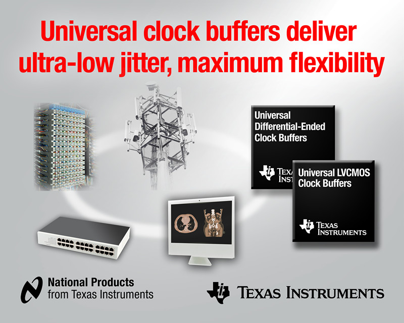 日前,德州儀器 (TI) 宣布推出 2 款最新通用時鐘緩沖器系列,進一步壯大其高性能時鐘緩沖器產(chǎn)品陣營。CDCLVC1310 LVCMOS 時鐘緩沖器可在晶振模式下實現(xiàn) –169 dBc/Hz 的業(yè)界領(lǐng)先相位噪聲底限。LMK00101/05 支持高靈活輸出電壓電平配置,可對該系列實現(xiàn)有力補充。LMK00301/04/06/08 差分端系列支持 51 飛秒 (fs) 超低附加抖動。